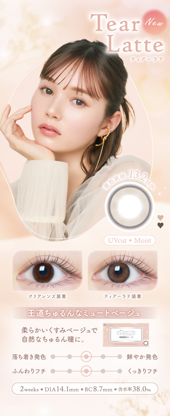 エルージュエルージュは2025年10月に10周年を迎えるカラーコンタクトブランド。 唇を彩る「ルージュ」のように 瞳の彩りをデイリーに楽しめるカラーラインナップです。 どんなシーンにもフィットする ナチュラルで印象的な瞳に・・・