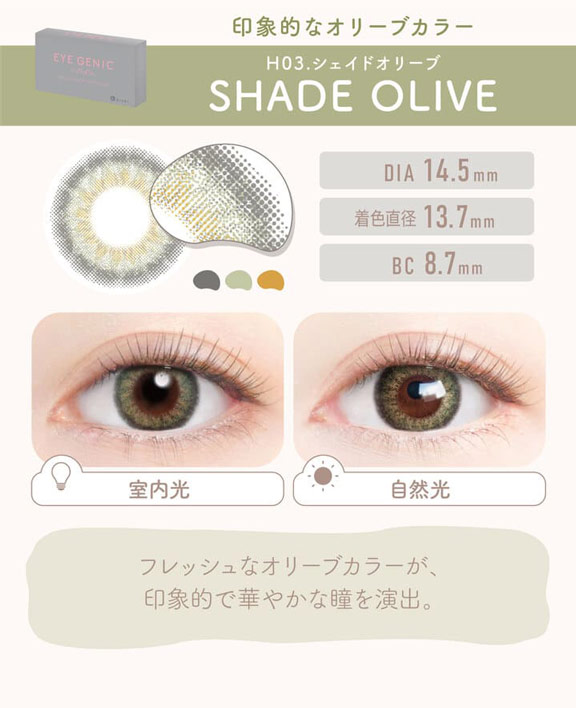 イノセントヘーゼル は、ヌーディに裸眼の色を引き立てるヘーゼルカラー。ほんのりと色素薄めな瞳を演出。